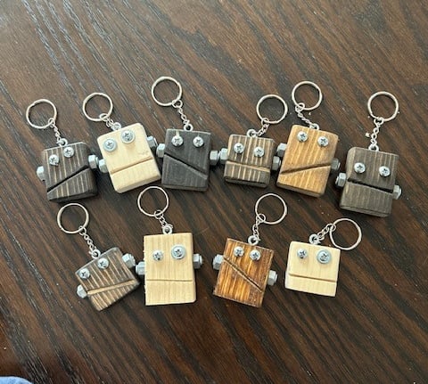 Wood Stained Robot Keychains